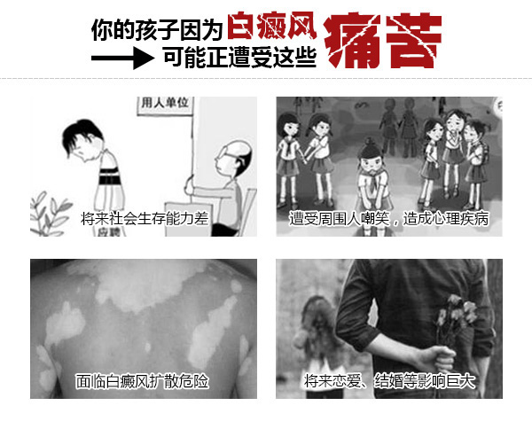 儿童青少年正处于生长发育期,白癜风对孩子的伤害比成人更大。白癜风根据个人体质不同,一般在1~6个月就会扩散至全身,导致孩子容貌尽毁、诱发各种并发症,同时给孩子造成不可磨灭的心理伤害。