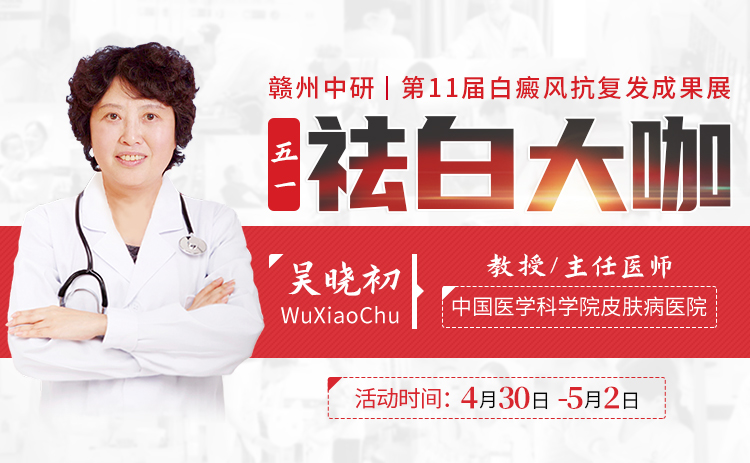 五一小长假到来之际,赣州中研白癜风研究院特别开展“五一速祛白|赣州中研第十一届白癜风抗复发成果展”,帮助更多白斑患者得到专业、科学、规范的检查与治疗,同时让白癜风患者做好夏季抗复发与防扩散诊疗工作,安全度过夏季白癜风“高发期”。届时北京白癜风专家中国医学科学院皮肤病医院主任医师吴晓初(4月30日-5月2日)巡诊我院,帮助更多患者在夏季更好、更快的祛白!