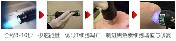 目前治疗白癜风应用广泛的无疑是308激光,中研引进的美国308准分子激光诊疗系统,区别于一般308光,它能直接作用于皮肤患处,快速激活黑色素细胞。